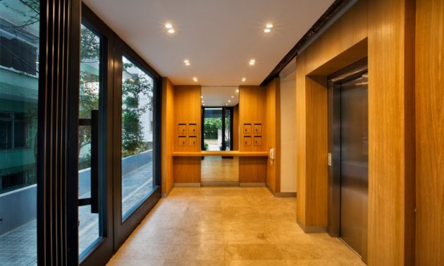 Maya Residence by Istanbul based TAGO Architects emphasizes the industrial background of the city with wide windows, high ceilings, calm colors and use of steel on the entrance canopy while providing an aesthetical living space for its inhabitants.