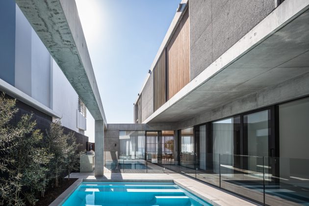 BE Architecture from Australia has designed a new family house on a plot alongside Mermaid Beach in Queensland, Australia. The home, named by the beach is called Mermaid Beach Residence – it is an exposed concrete structure with wood details. It spans across two floors with a total of 5,381 square foot of living spaces.