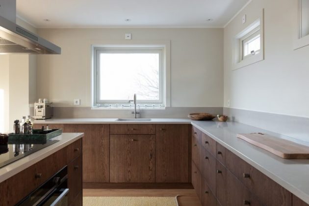 The 194 m² house is in Sweden and we do not have to be fooled by the exterior, very discreet as you can see with a modern and cozy interior.