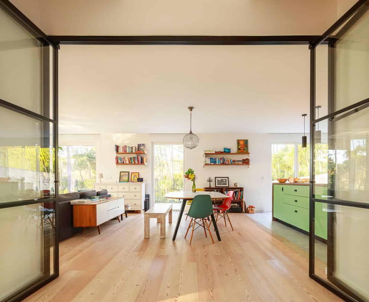 One of the defining gestures of the design is the house’s ability to evolve with nature. The volumes were planned to allow climbing vegetation to eventually envelop the façades, ensuring the building changes character across the seasons.