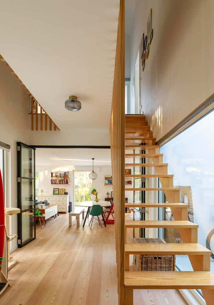 The upper level houses private functions. Each bedroom connects to a balcony, offering elevated views of the landscape while maintaining a sense of intimacy. This organization reinforces the idea of a constant dialogue between interior comfort and exterior beauty.