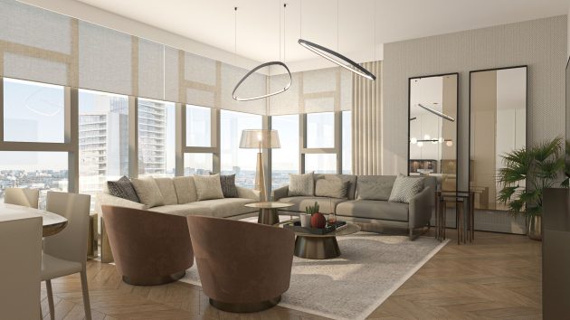 The apartment interiors are based on elegant and functional layouts, with calm, uncluttered spaces that allow the occupants the flexibility to inhabit them in a number of different ways. The living room facades of the tower are glazed to provide spectacular views of the living court and open city view, while the room is facing elevation integrating the buildings with the surrounding urban grain. The podium level and surrounding external spaces provide a cluster of shops, cafes, restaurants, a gymnasium, a children’s area, and a public open court.