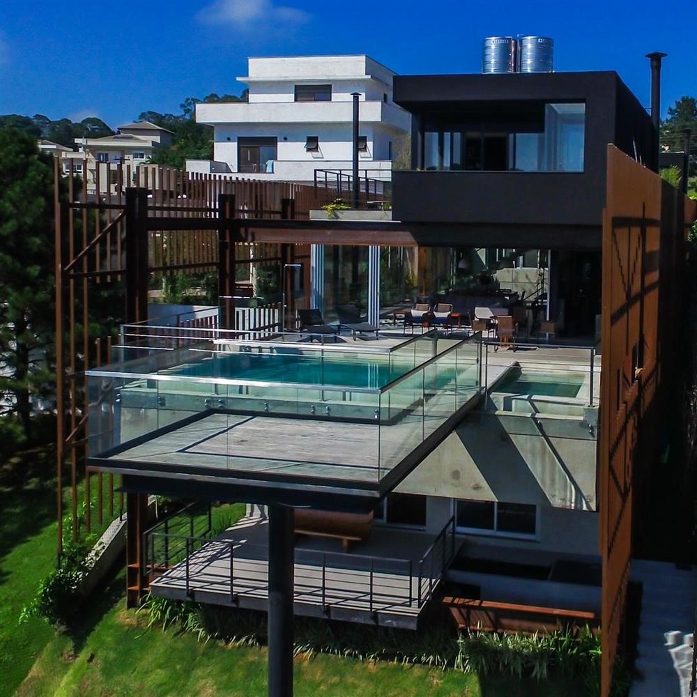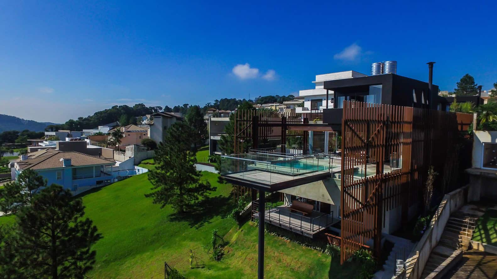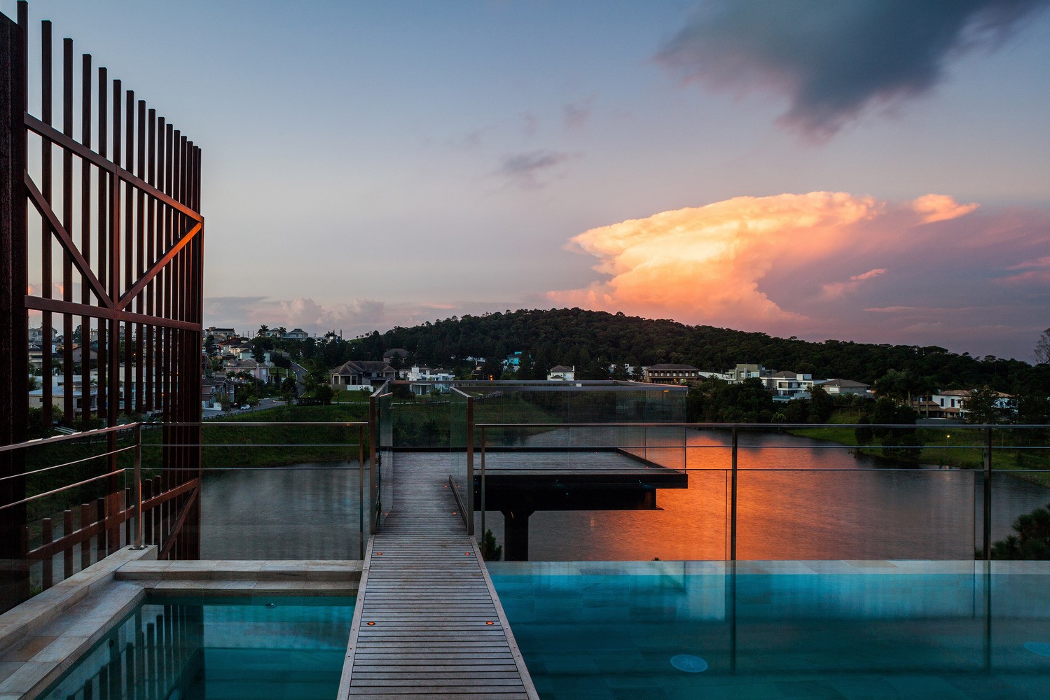 FGMF has designed the Mirante House near a beautiful lake in Aldeia da Serra, Brazil. It is a luxurious dwelling with over 8,500 square feet of modern living spaces on an elevated position that offers great views of the lake.