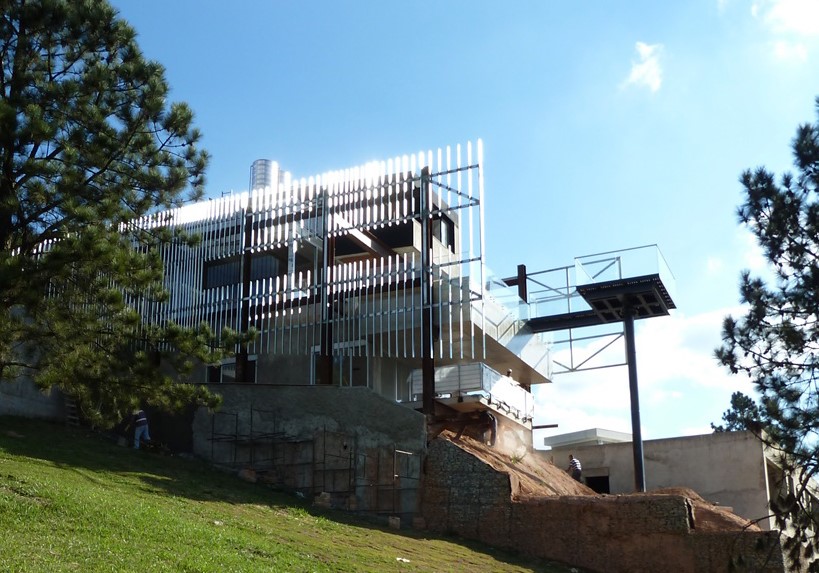The building’s spatiality, derived from this slab trimming conception, almost organic, provided natural illumination and a close relation to nature. The upper level floor, intimate, is designed as an irregular block supported by this structure and it holds more fences than the other floors. The residual spaces upon the social block ceiling become uncovered garden terraces to the superior floor.