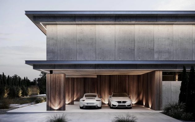 The Modern House project by Dezest Design Studio is a stunning modern residence located within the Kyiv Region of Ukraine. The carefully laid out plan brings the total surface area to 6,275 square feet, spread across two stories. One of the main aspects of the design of this residence was to bring as much natural light as possible to the minimalist interiors using large glazed surfaces on both floors. This also opens the interiors up to views of the stunning landscaping that surrounds the building.