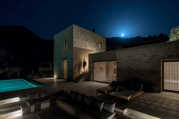 Desypri & Misiaris Architecture has designed a spectacular villa in Mani, Greece. This 3,121 square foot dwelling is set on an elevated position giving it access to views that are simply breathtaking. Naturally, the design aims to make the most of its pristine location so the deck features a beautiful infinity swimming pool turned towards the views of the sea in the distance.