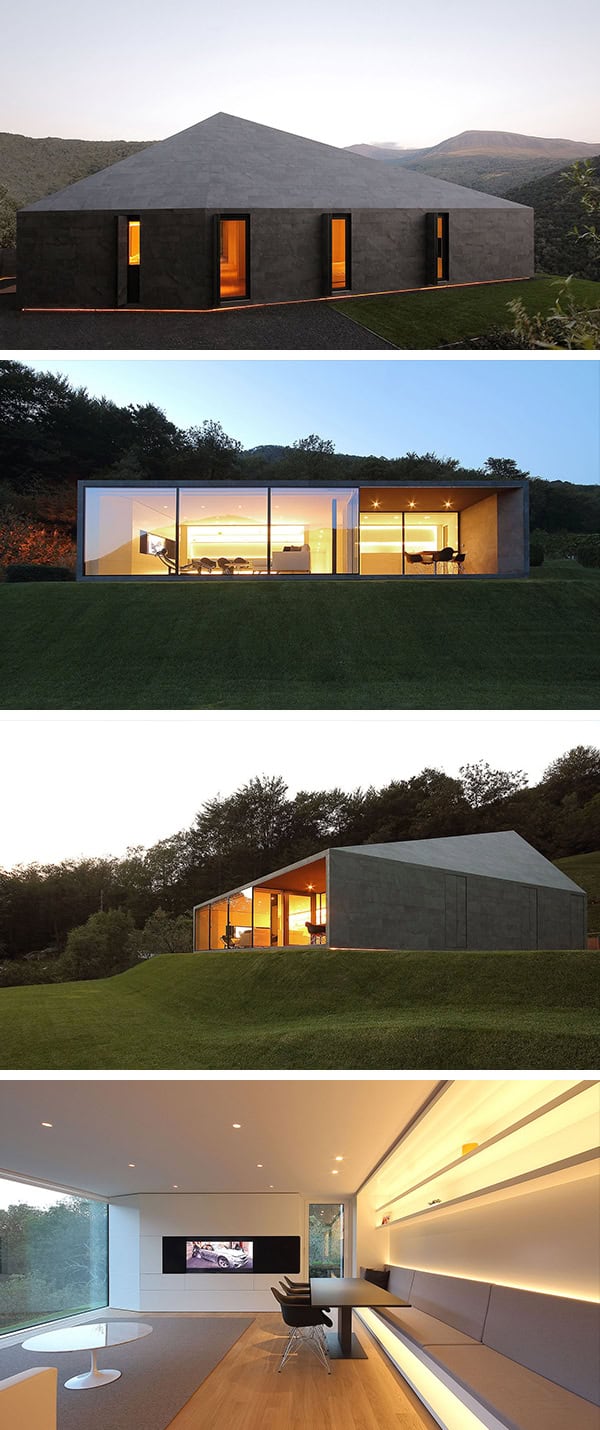 The only exception is the South elevation, facing the valley, which grants a spectacular 180 degree view through a curtain-wall that encloses the living area and folds inside creating a loggia to be used in the warmer months.”