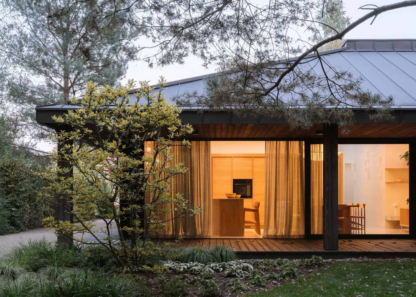 MP_II House by Kruk Architekci is a low-profile dwelling seeking harmony with its wooded surrounds near Warsaw. Conceived as a silent enclave, the house is designed to recede into the trees while offering light, shelter, and precisely framed views.