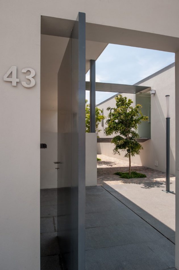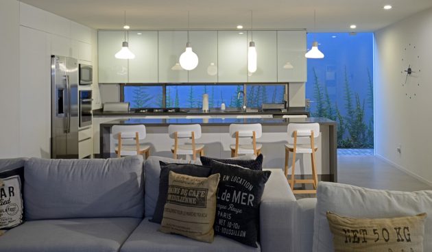 Aware of the ever-present need to reduce energy and water consumption, we followed passive house specifications including solar water heaters for the house and pool, LED-based lighting and state-of-the-art artificial turf in the garden.