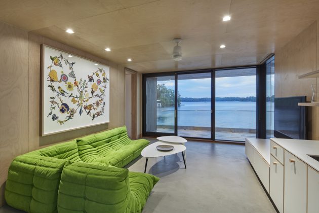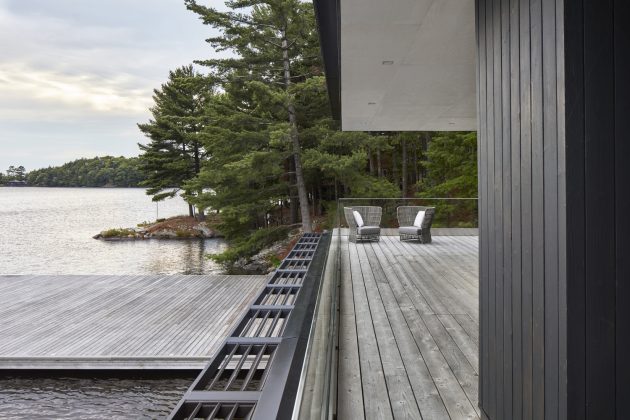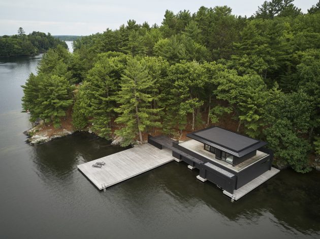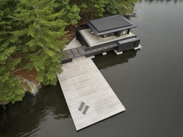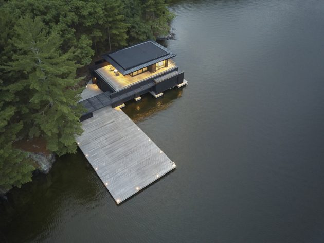 Wide openings allow for seamless movement between the dock and the interior, reinforcing a direct relationship between architecture and the lake.