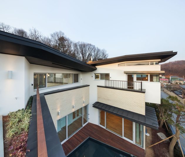 jhy architect & associates have designed the Naegok V House in Seoul, the capital of South Korea. The design of this 3,164 square foot home boasts a contemporary look and layout but it incorporates traditional design values that create a wonderful combination of modern and traditional for the region.