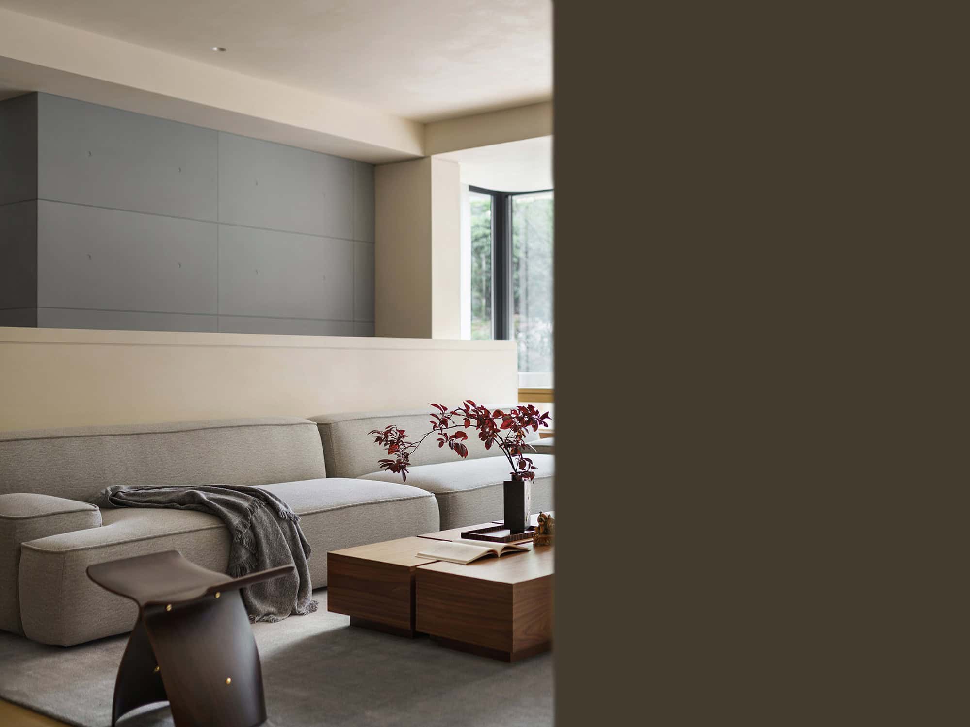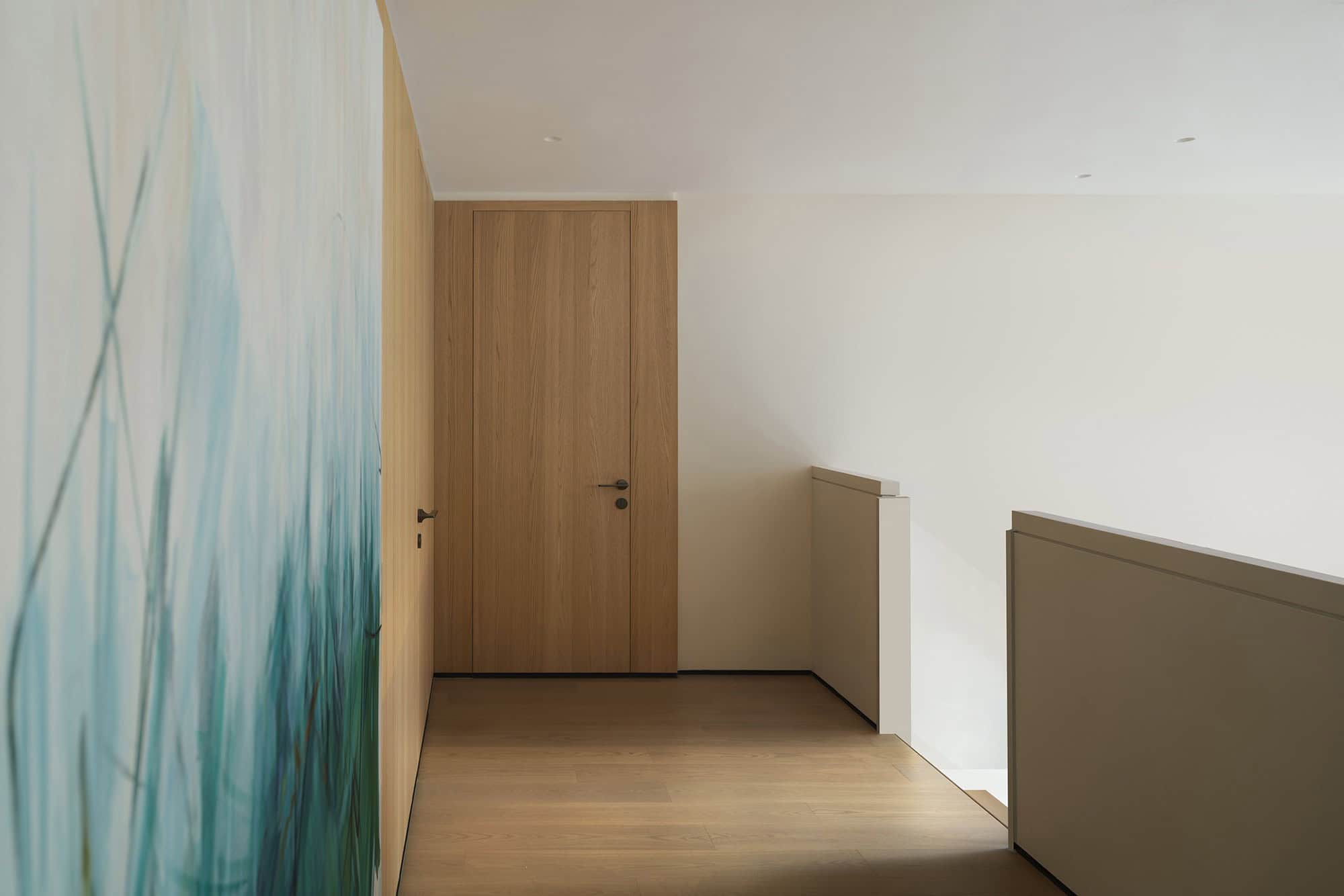 The design relies on controlled restraint: instead of ornate decoration, subtle shifts in light, texture, and materiality define each zone.