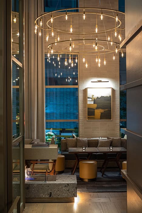 “The interplay between indoors and outdoors was of particular importance in the street-level lobby and garden space as well as in the dining areas one floor above,” explained Bernerd, who integrated floor-to-ceiling Crittal windows into the design of those spaces to enhance the relationship between them.