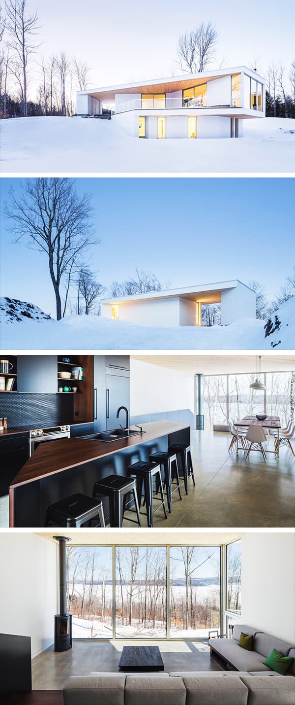 Acting as a landmark through the lush summer, the house changes with the seasons and its whiteness blends into the winter landscape as a tribute to the great Quebec winters.