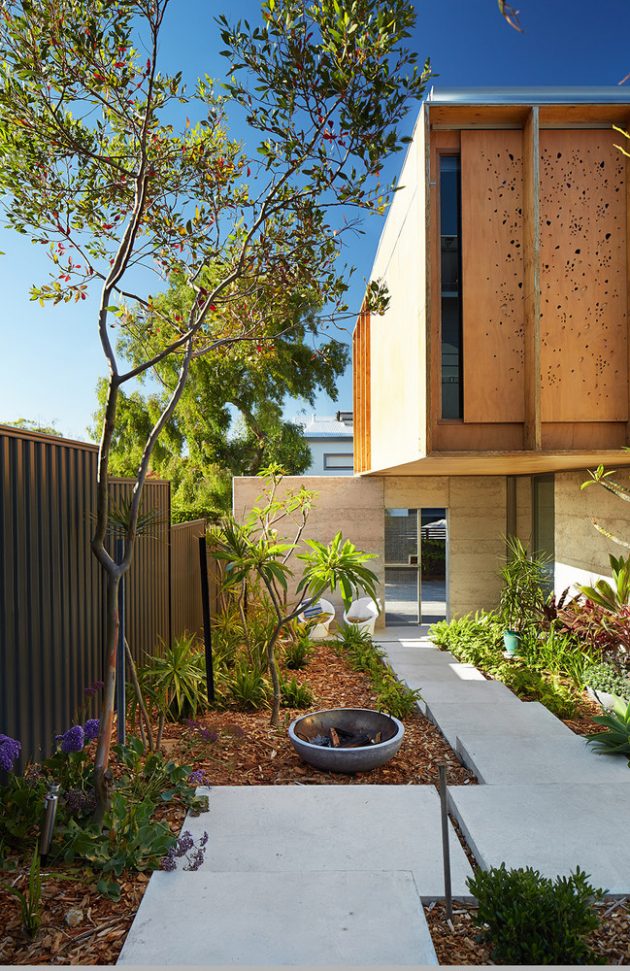 This project set out to provide a demonstration of how a generous family home could be constructed on a small inner city block. It set out to show how a small block could still have a generous amount of external spaces for living and gardens and it also wanted to challenge the notion that architecturally design houses were unaffordable. Finally we wanted to design a house that privileged the spaces for people over the spaces for cars. No lock up garage was provided in this design but rather a two car parking area off the rear right of way.
