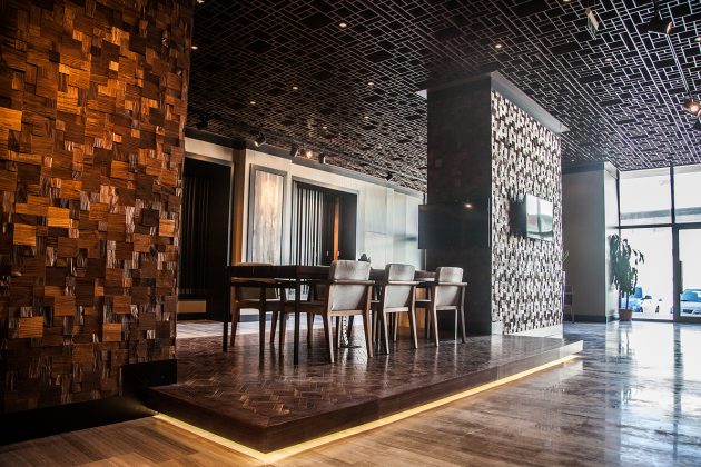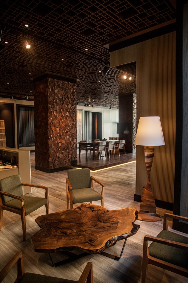 With balanced space solutions in office units, warm and serious spaces have been obtained with the effect of earth tones used throughout the project. The showroom unit, which has been designed in 250 sqm area, exhibits wooden products for those who like wood.