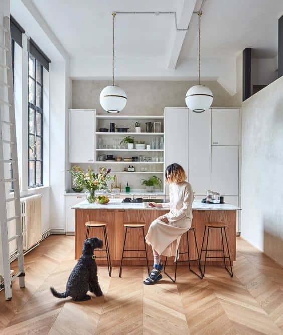 It is the most desirable element in an open kitchen. The island is a transitional element between rooms, even if they are small. A way is being sought to integrate it, adjusting its size and uses. In any case, always add at least storage and support space. Don’t forget to plan points of light on the kitchen island so that you are not dependent on the sockets in the work area.