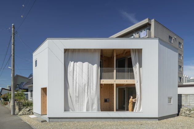 Opening Next to the Park House by Qukan is a unique residential project located in Japan. The architects sought to create a house that fully embraces its proximity to a small park, while maintaining a certain level of privacy and distance from it. The house features an enclosed semi-outdoor space called the “outdoor living and indoor garden,” which serves as a continuation of the indoor space while securing visual distance between the indoor space and the park.