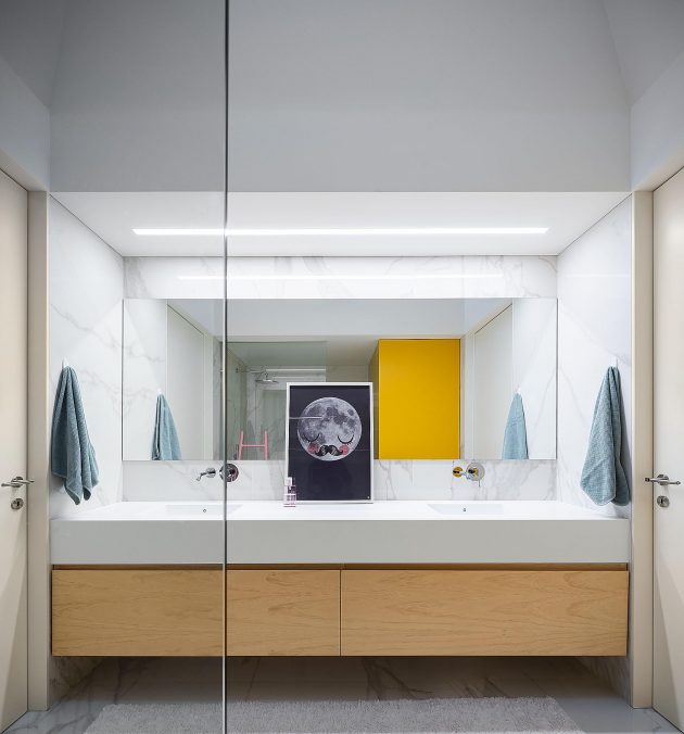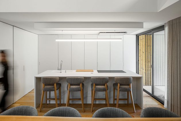 The intimate area, on the other hand, confines a covered outdoor space providing privacy and allowing, simultaneously, natural light to flood the interior. In order to intensify the relationship with nature, the house evokes the simplicity and sobriety that characterizes the surroundings.