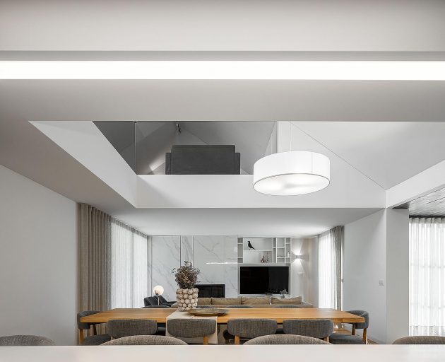 These volumes are organised in different orientations in search of the best relationship between them, and each other with the outside. The contrast between the raw concrete facades and the interior of the house creates an intimate tactile sensation, experienced through the patios, the skylights and the stairs. The social area extends to the outside and to the upper floor, creating a variety of living spaces and proximity to the householders.