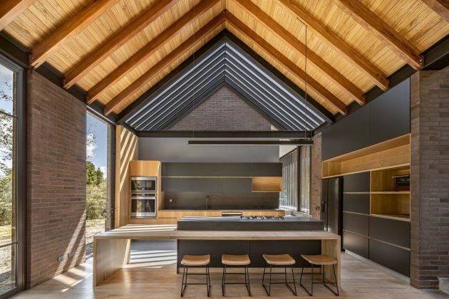 Brick weaves and thickness modulation create a tactile façade that modulates light and shadow while framing views of the landscape with calibrated transparency. Complemented by wood, glass, and metal details, the material palette reinforces both durability and warmth, anchoring the architecture in a grounded yet elegant material apprehension.