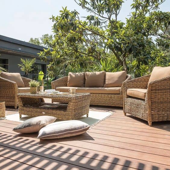 Braided resin, with its appearance close to natural rattan, has the advantage of being affordable and resistant to bad weather and UV. Choosing resin garden furniture ensures a comfortable, inexpensive, resistant, and undemanding exterior. Indeed, this synthetic material is very solid and does not require any particular maintenance. You can even leave your garden furniture outside all year round, regardless of the region in which you live. However, for a garden set that lasts over time, it is better to store it in a garage or under protective covers during the winter. Of course, if your outdoor furniture has cushions, these will not keep their shine if they spend the whole year outside.
