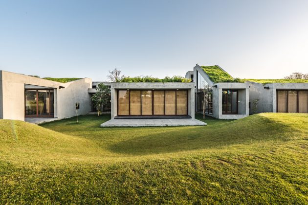The lush green farmlands that surround the site in every direction inspired the architects to create an enigmatic feel through carefully camouflaging the building with the natural backdrop that offered a matchless view of the horizon.