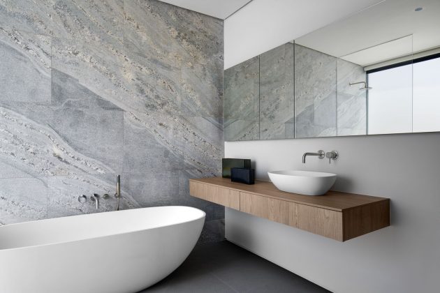 The architecture of this home has a restrained, natural material palette, and is respectful of the importance of the ever-changing city and ocean vistas. The house is conceived, detailed and finished in an understated and unadorned manner, creating calm, flowing spaces that are easy to live in.”