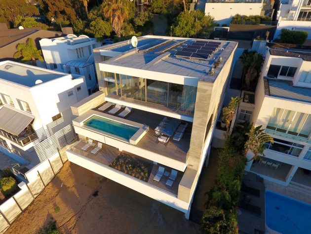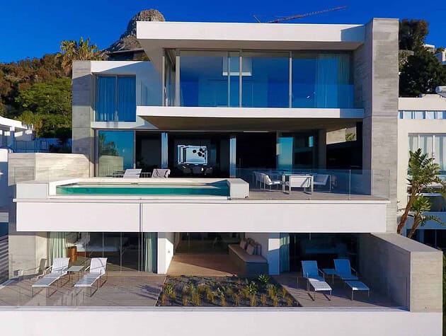 OVD252 is a luxury, private home located in Bantry Bay of Cape Town in South Africa. The owner of this home had been living on the site in a house built about 10 years ago before he hired Three14Architects to design a brand new home on the steep mountainside that will boast undisturbed views over Cape Town’s Atlantic Seaboard and Robben Island  to the north and north-east.