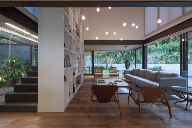 The Pacaembu House is a stunning contemporary home designed by DMDV Arquitetos. It is located on a beautifully landscaped site in Sao Paulo, Brazil. The exterior design of this home makes use of a different materials to fit in with its natural environment and open up to the stunning views all around it.