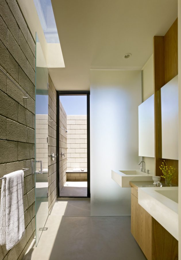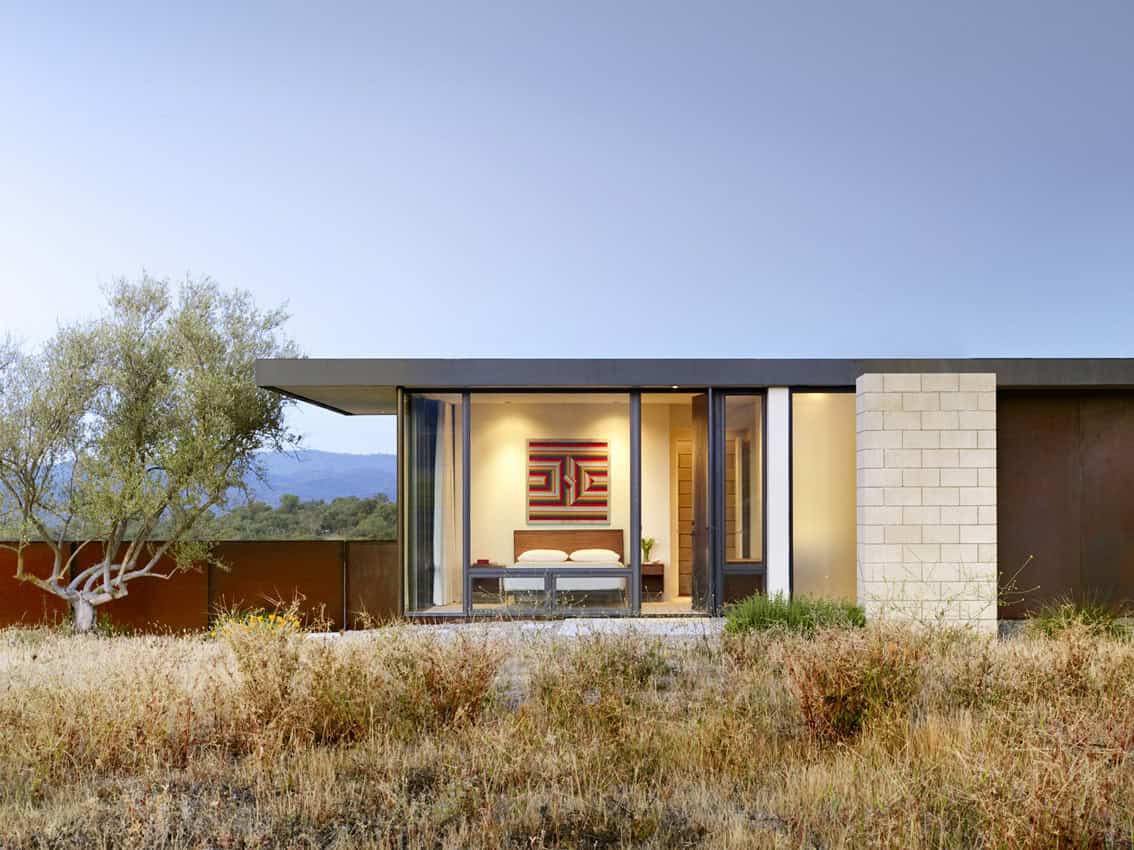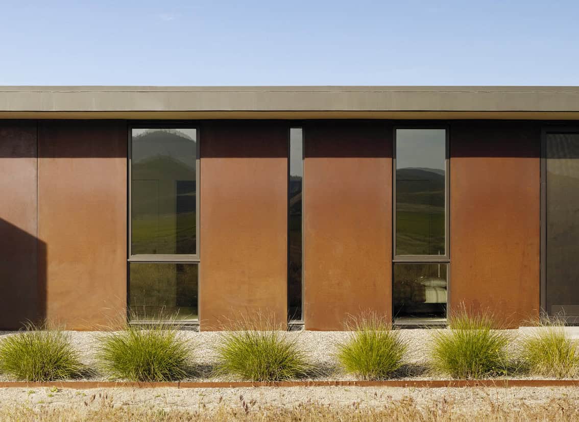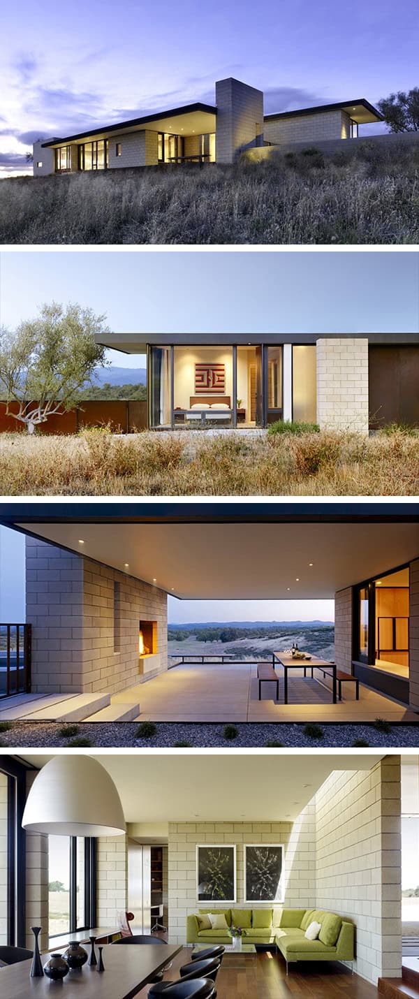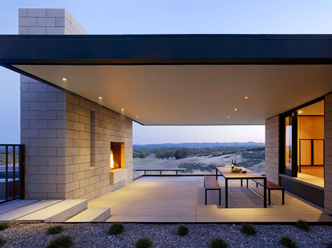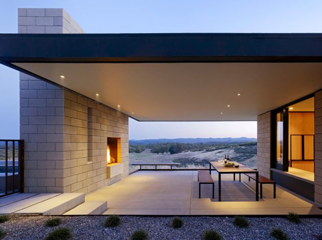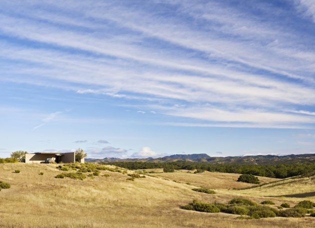 The biggest challenge for this design was the weather. The home sits in a high temperature environment with very rare rainfalls. But despite the high temperatures, the home only relies on passive cooling systems to maintain a rather comfortable atmosphere. There is no air conditioning unit in the Paso Robles Residence. Instead, it employs techniques used by the nearby vineyard storehouses.