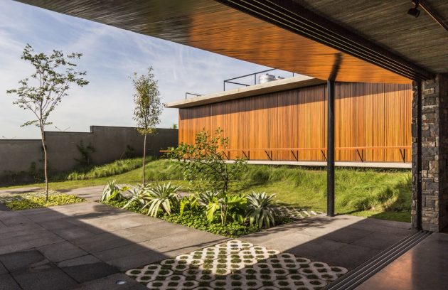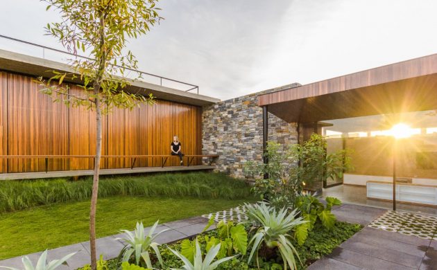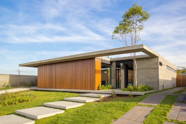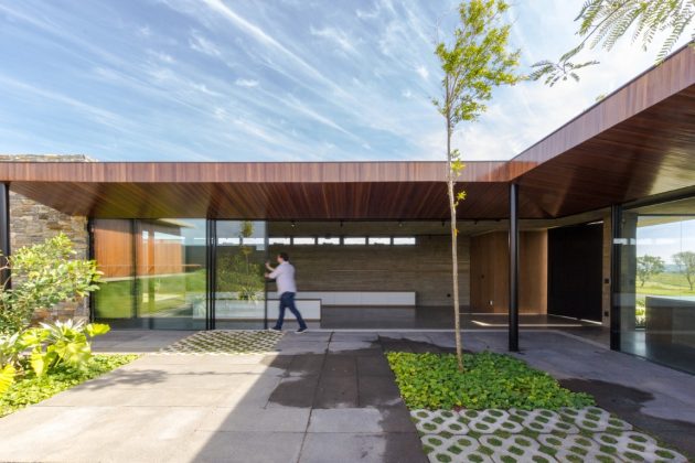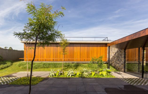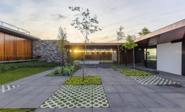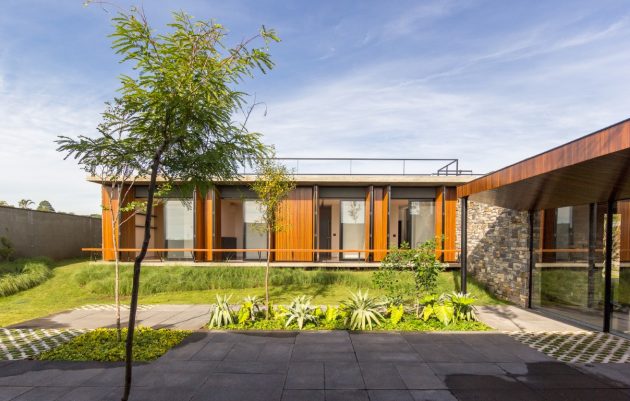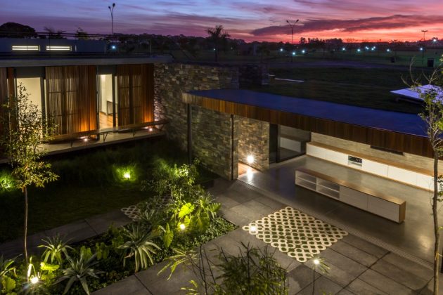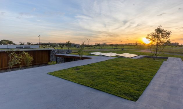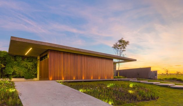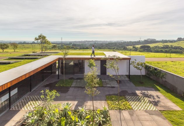 24 7 Arquitetura has completed the Patio House in the town of Jaguariuna in Brazil. This outstanding modern dwelling features a living roof that connects with the landscape around it. With over 3,500 square feet of living spaces, this single story provides a habitat in touch with nature.