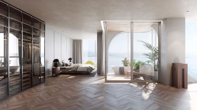 The palm leaf structure offers 270 degree bay window views for each bedroom in the building, so that owners can truly live in harmony with the natural landscape of mountains and the sea.