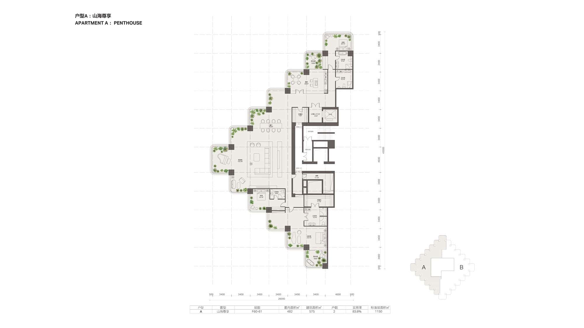 Roof garden is designed with jogging tracks for people to exercise and relax during spare time. There is also a 200m long super infinity swimming pool, establishing a visual connection with the sea and offering a spectacular view for future owners.