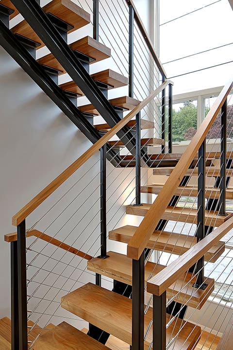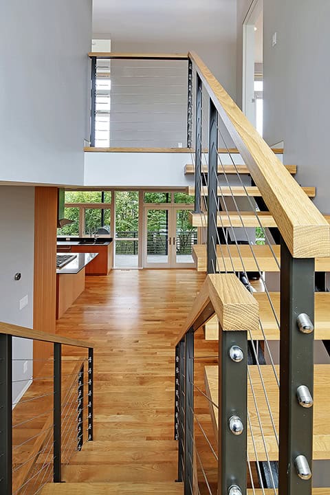 The Phinney Ridge home is nestled into the footprint of the site’s previous house to utilize zoning guidelines that were grandfathered into this urban neighborhood in Seattle. This approach resulted in an elegant and vertical home built on three levels.