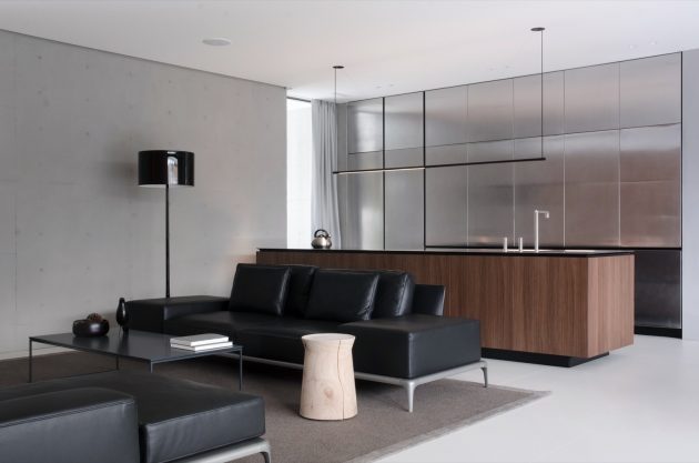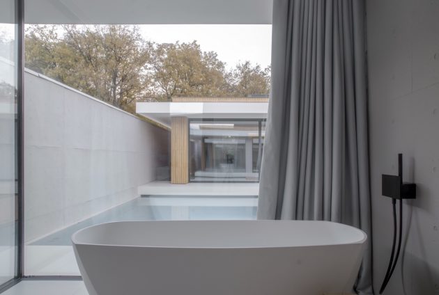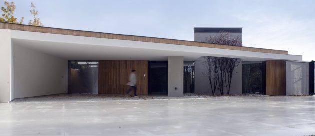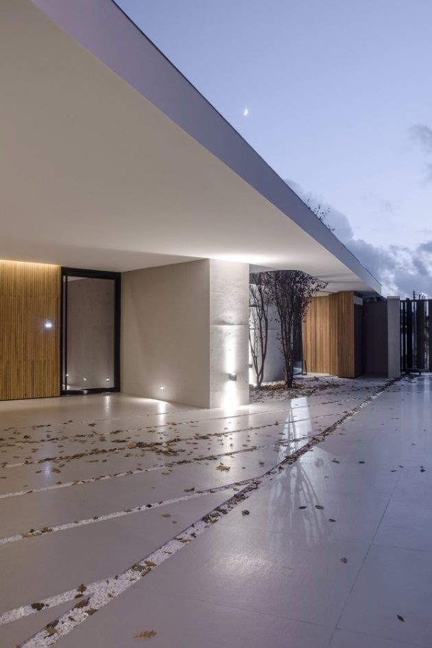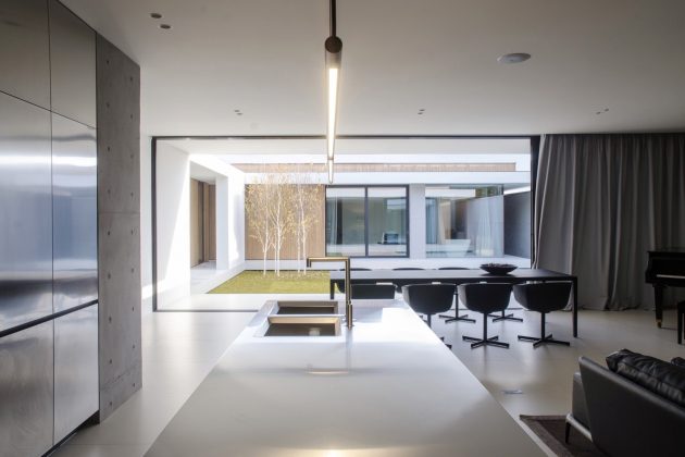Its characteristic, clear and concise lines connect the exterior with the interior throughout the entire house, which is spread over most of the plot area, built around the courtyard.