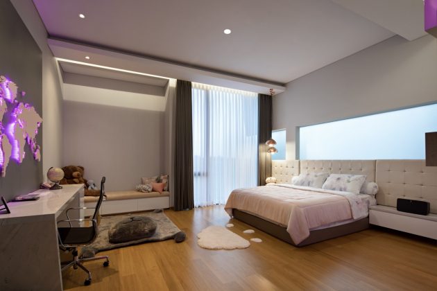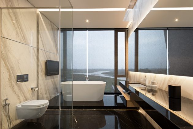 Its exterior gives away such a sophisticated vibe where everything just fits together and the modern aura is contrasted by the vivid green colors of the trees and plants integrated in the design. The architects have done a truly spectacular job. Take a look at it below!