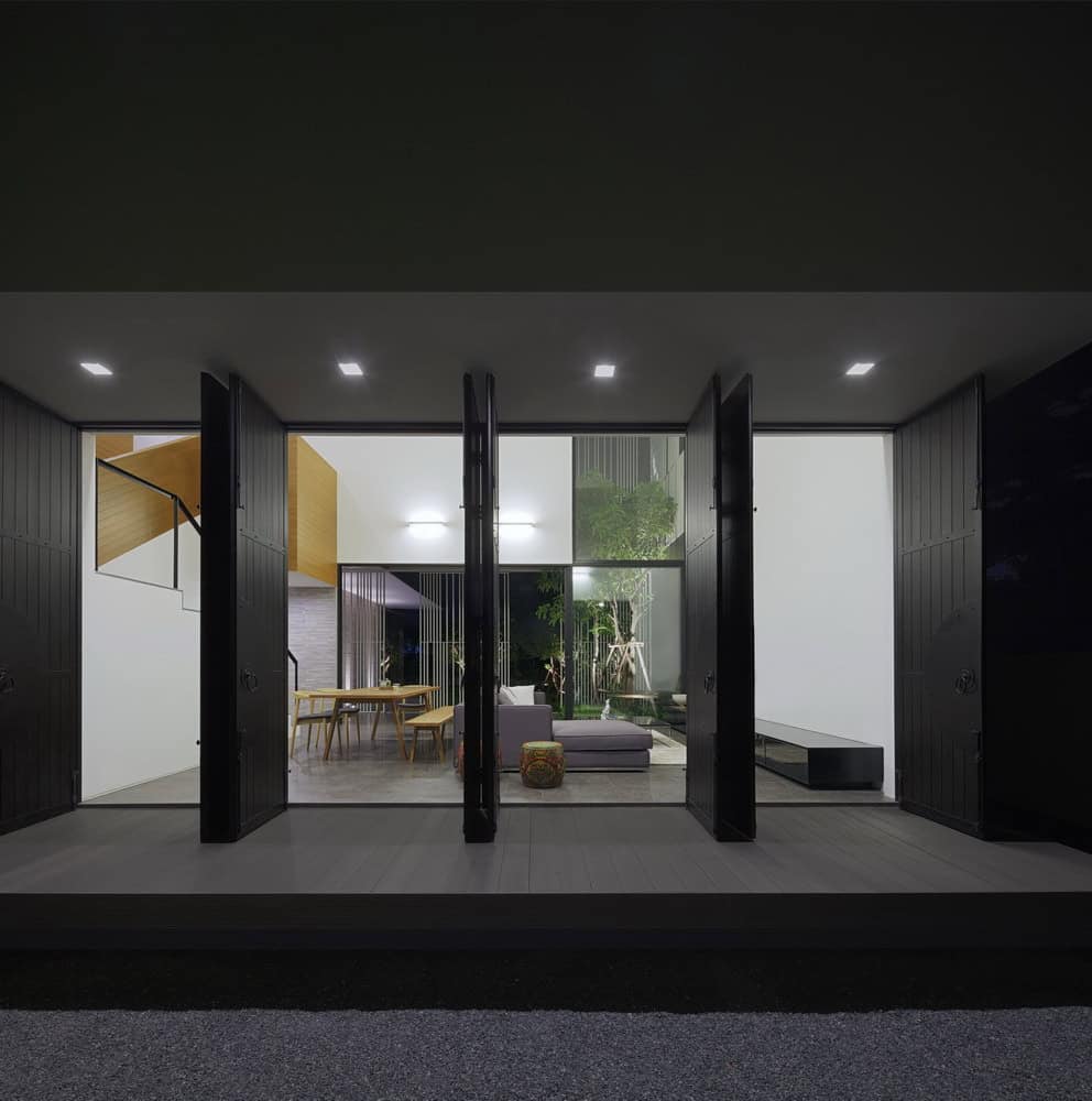 Which somehow make the owners feel uncomfortable and ends up being confined in their own residence and also causes negative effects like terrible shape, view blocking, and extra maintenance. Although today world can solve this problem with various technologies, most Thai people still feel insecure to live in a house without these secondary screens. We live in these skins for years and years becoming unconcerned about it. This gives an architect a design question to develop the façade which works as a protector, but at the same time improves living quality by creating space hierarchy and special characteristic. Ayutt and Associates design (AAd)’s result turns out that the house has the special protection screen, which works multi-function as a house feature facade, space divider, a wall, a sun- heat protector, air buffer zone and air ventilation.