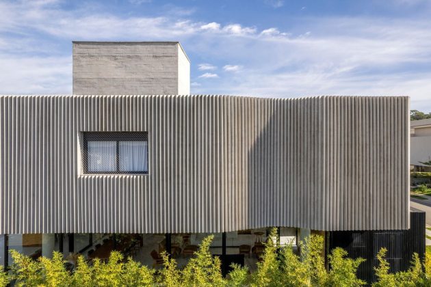 The house takes its name from its most distinctive feature: a pleated concrete façade that folds rhythmically across the upper floor, transforming the building into a piece of inhabitable sculpture. Behind this dynamic geometry lies a quiet and balanced home designed for contemporary living in Brazil’s tropical climate.