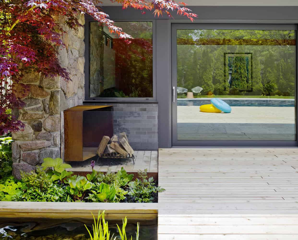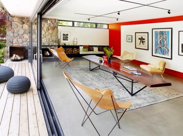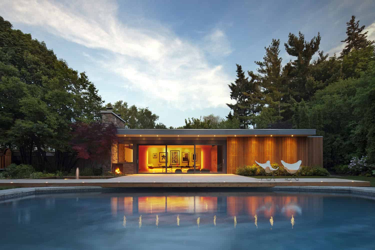 +tongtong is a studio from Canada whose Pool House design has drawn our attention. This beautiful mid-century residence in Toronto has been renovated in a multi-functional scheme. It combines a variety of open-plan interiors and outdoor areas that interconnect. One of the main characteristics is the ability of the interior to be quickly transformed into a guesthouse, an office or a space for public events, all that in a building that is merely 1,000 square feet.