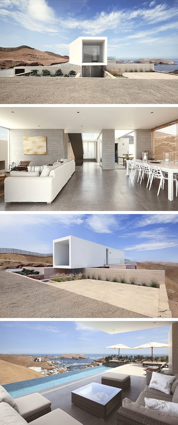 The Poseidon House is a cubic concrete structure located in the Pucusana district of Lima in Peru. It was designed by Domenack Arquitectos.