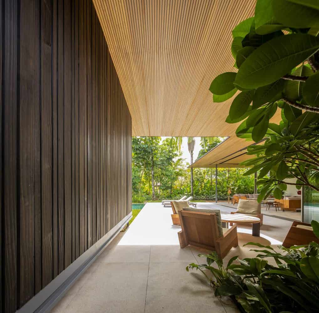 The architects chose a moderated scale to make maintenance and daily use effortless. Through a steel structural system, deep overhangs, and clean lines, the design remains minimal and exact. The charred wood façades, wooden ceilings, and granite flooring establish a refined material language—warm, tactile, and resilient to coastal climate.