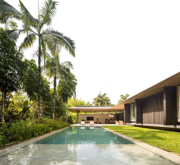 PS House embodies passive strategies as core to its design. The deep eaves, cross ventilation, and strategic orientation help regulate interior temperatures naturally. Utilizing a steel frame reduces material bulk, while the compact shape and open façades help the house act like a breathing organism. The blackened wood façade also helps protect the timber from sun and moisture, reducing maintenance and thermal stress.