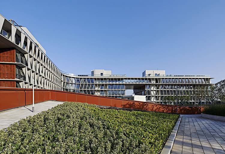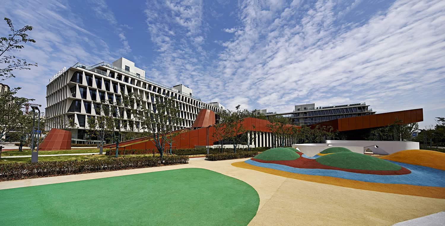 Vegetation, permeable surfaces, and shaded courtyards support sustainable drainage and microclimate control — aligning the project with China’s “sponge city” strategies for flood resilience and urban cooling.