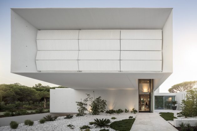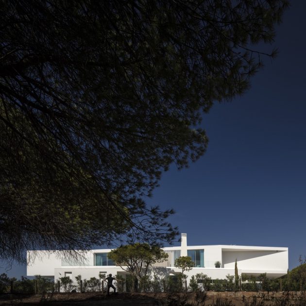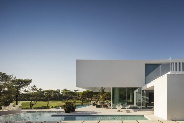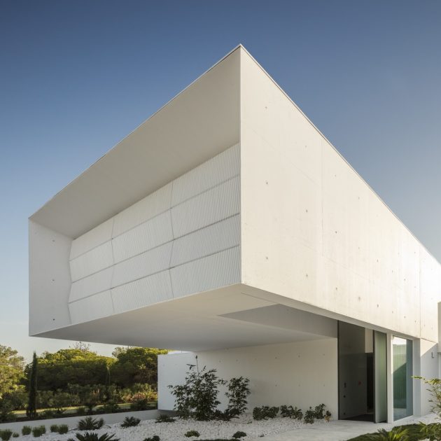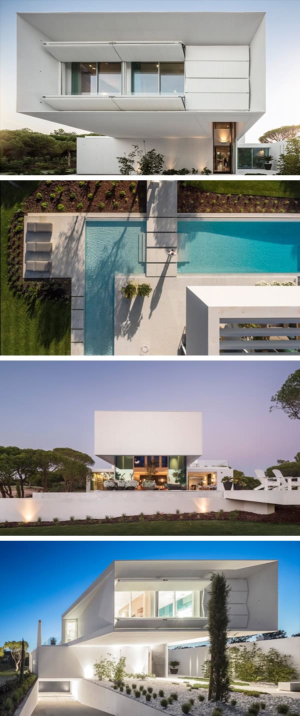 From the architects: “The QL House is located in one of the most exclusive areas of Algarve, on the Portuguese southern coast, a singular presence in an essentially residential neighbourhood. From where it was erected it is possible to see captivating surroundings: golf courses, residences, the estuary and, dominating the background, the Atlantic Ocean.”