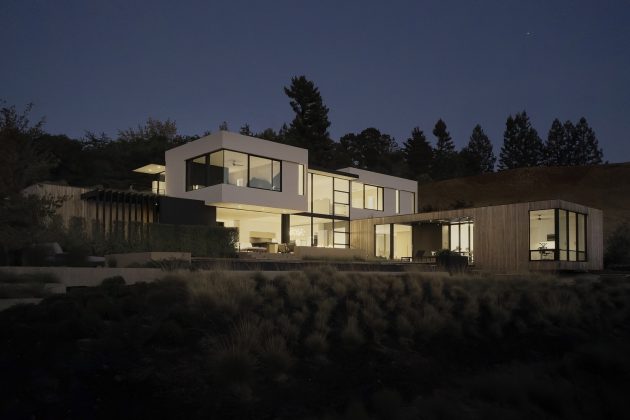 Designed by Feldman Architecture, Rau Haus is a serene, modern retreat nestled in the rolling hills of Portola Valley, California. The 3,433-square-foot residence responds to its site with a low-impact, eco-conscious design that captures panoramic views of the Coal Creek Open Space Preserve and distant glimpses of the San Francisco Bay.
