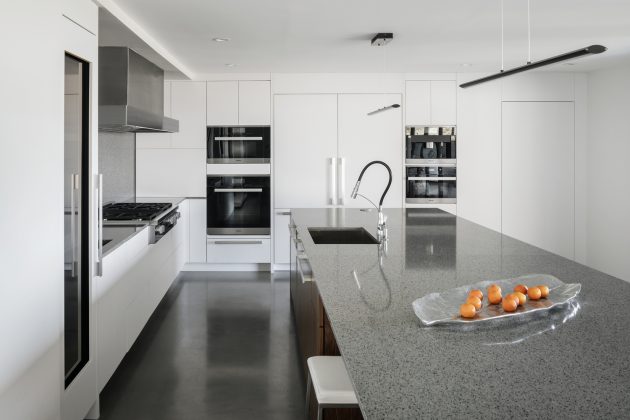 The owners of this residence didn’t want the “enclosed” look that limited the views and sunlight access, so the first thing the architects did was to strip the building of all the additional design features that gave it the characteristic look. From then on, they began working on their own design.