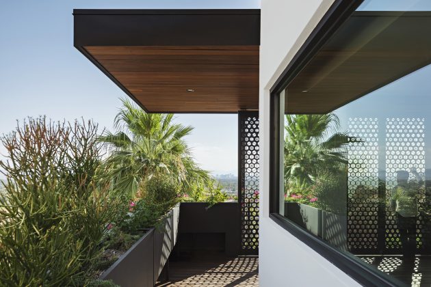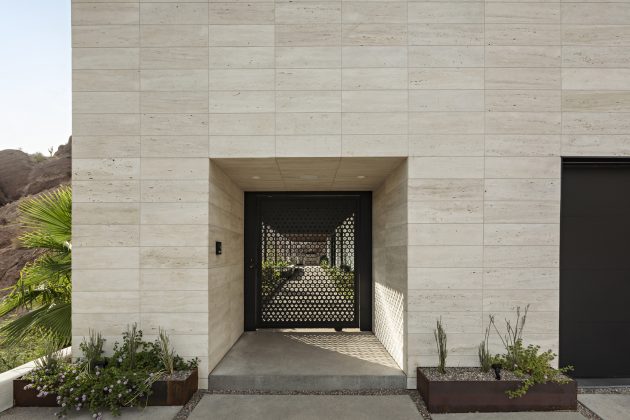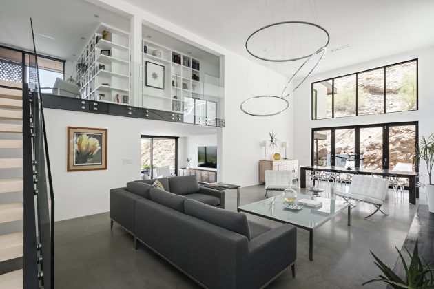 The south facing 2nd floor patio features bi-folding custom steel screens that help shield the deck from the harsh desert sun but can be folded aside at dusk to take in the Arizona sunsets.