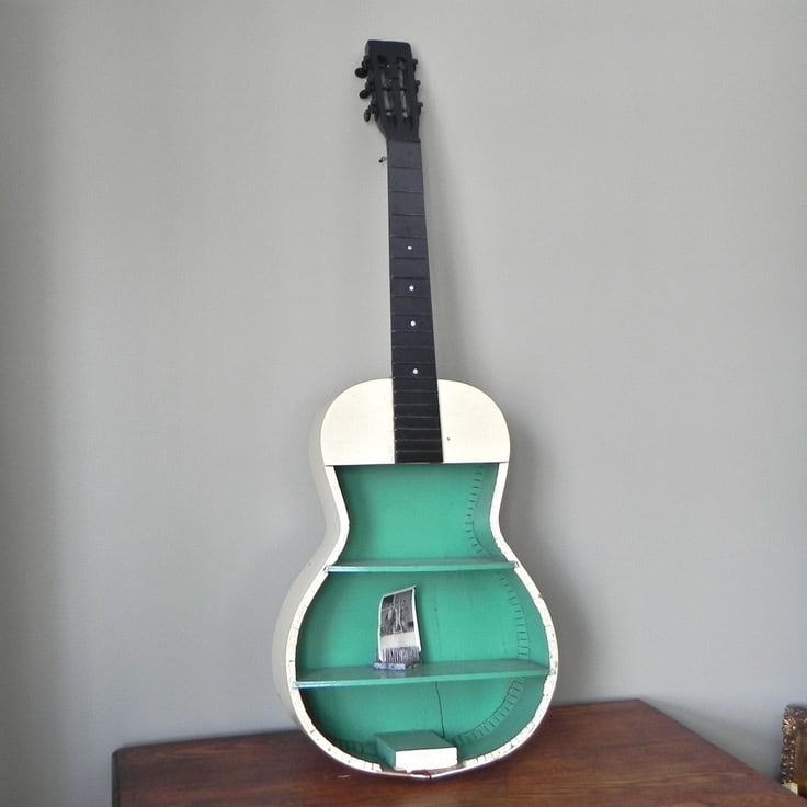 For today we have one extraordinary DIY project- repurposing an old guitar. You can turn your old guitar into shelves, and you will have unique and remarkable decoration.But just in case, we want to encourage you to give your instrument one more chance, a good reference point are these guitar lessons recommended by GuitarFella. If however, you are done with your guitar for good, you can move on in your life.