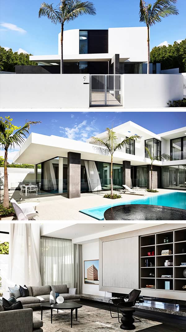 Following the same minimalist principles, the Resort House is very similar in the previously mentioned homes in Brighton. It’s elegant and simplistic exterior is carried over on the interior with an even more elegant combination of colors, materials and shapes.